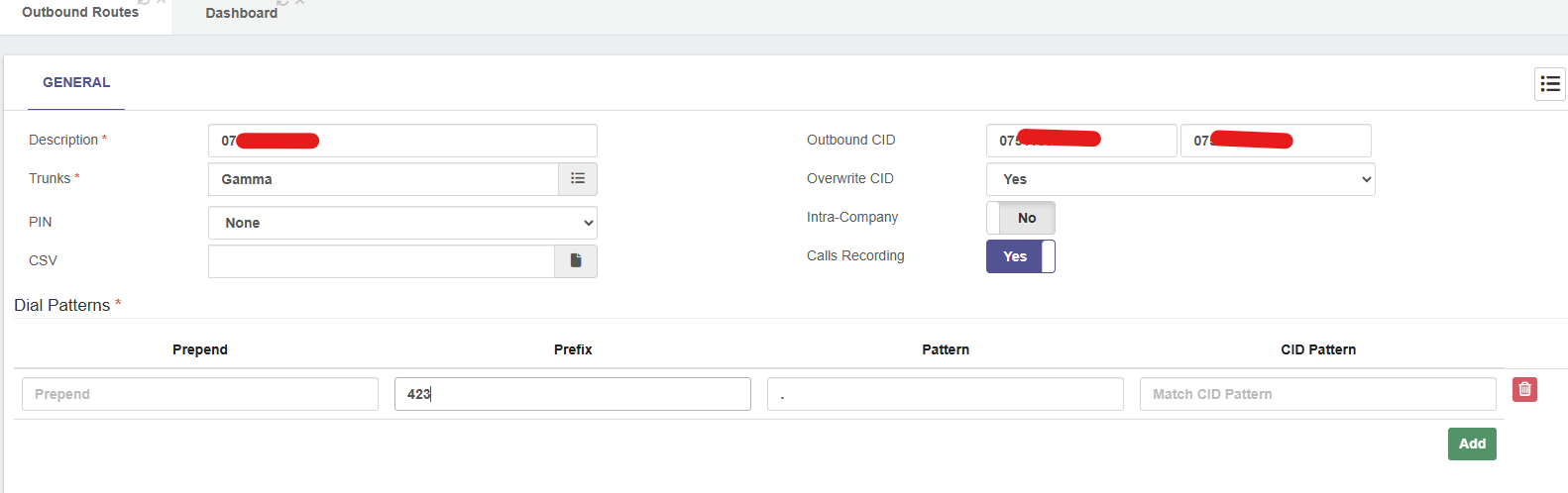 Its worth mentioning that you can have as many outbound routes with their own prefix as you need. if you dont dial a prefix, then your outbound call will display you main outbound CID.