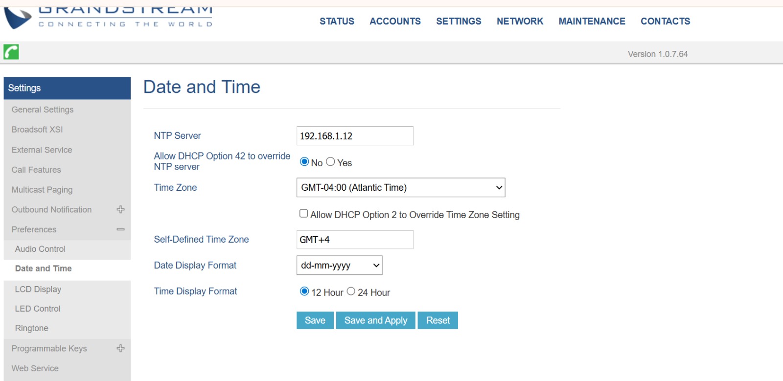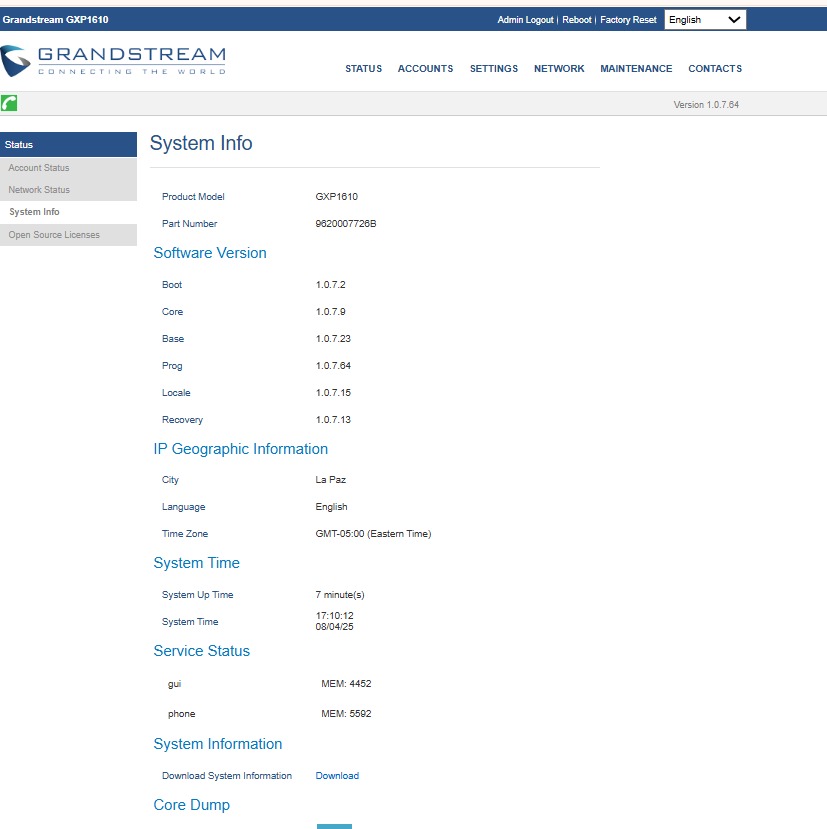 We are experiencing an issue with the time synchronization of IP phones in a client installation with VitalPBX R4. Although the XML file in provisioning has the client’s time zone and NTP server settings correctly, as can be seen in the screenshots and attached text file, the device’s time is one hour ahead of our local time in Bolivia (GMT-4).